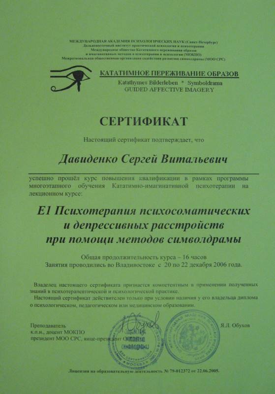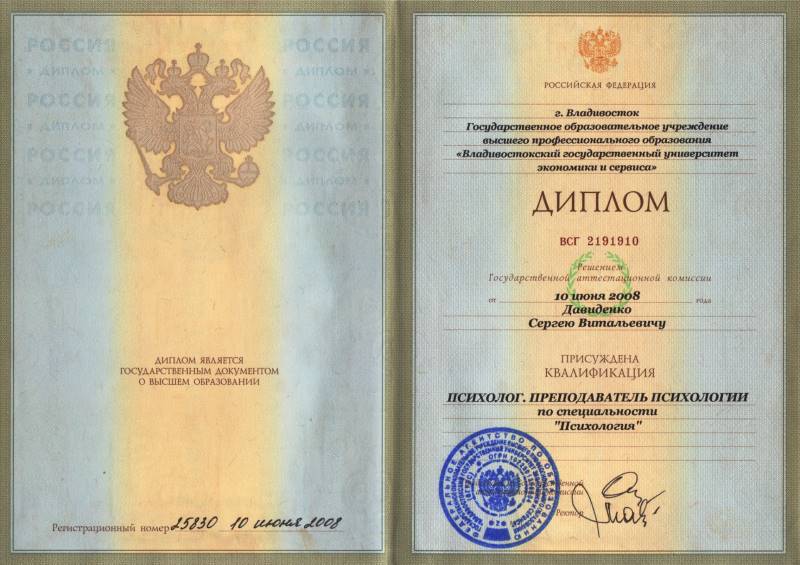 Психолог. Преподаватель психологии. ВГУЭС. 2008 г