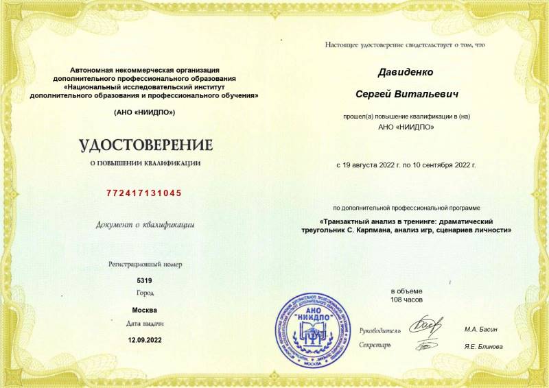 Транзактный анализ в тренинге. НИИДПО. 2022 г